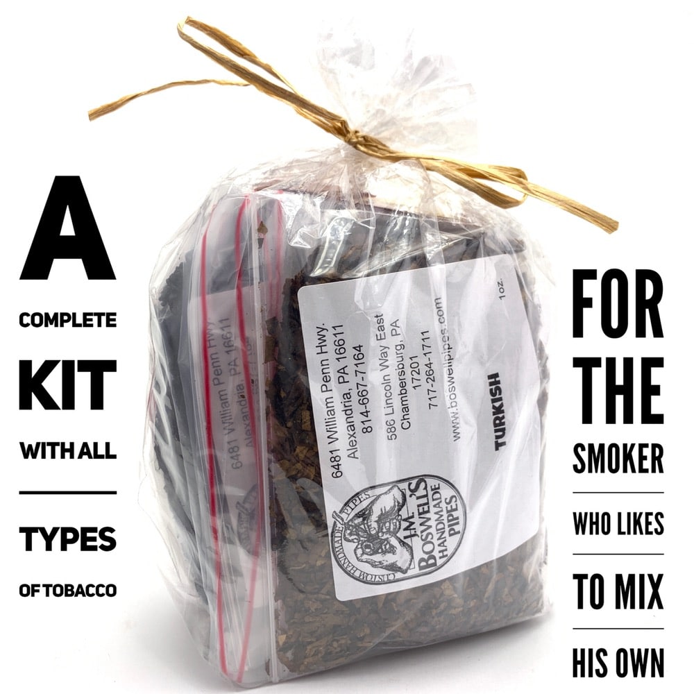 A Complete kit with all types of tobacco for the smoker who likes to “Mix his Own”