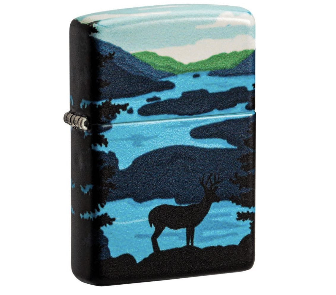 Immersive, vivid, durable designs are the new frontier of Zippo’s unparalleled decorative abilities. Zippo’s new 540 Color process allows for complete coverage of the lighter’s surface with precision artwork. This landscape design utilizes the 540 Color process to create this picturesque scenic view. In the foreground of the design, you will find a deer that brings a touch of wildlife to the rich forest. Hinges and bottom stamps are laser engraved to allow for peak performance and easy date stamp verification, but otherwise, every single nanometer of the lighter’s surface can is covered by this resilient new process. Comes packaged in a gift box. For optimum performance, fill with Zippo lighter fuel.